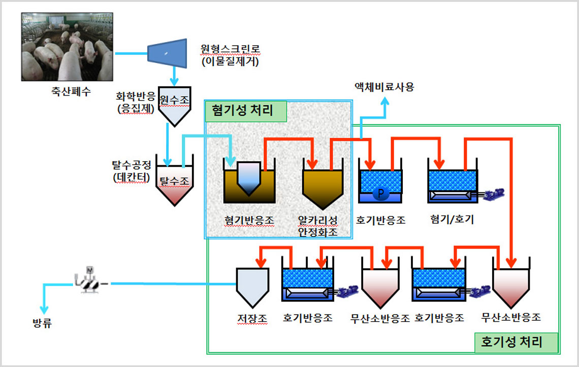 - - 미세 축분 고액을 분리함으로써 유기물 함량을 낮추는 고형분과 액상을 분리하는 공정